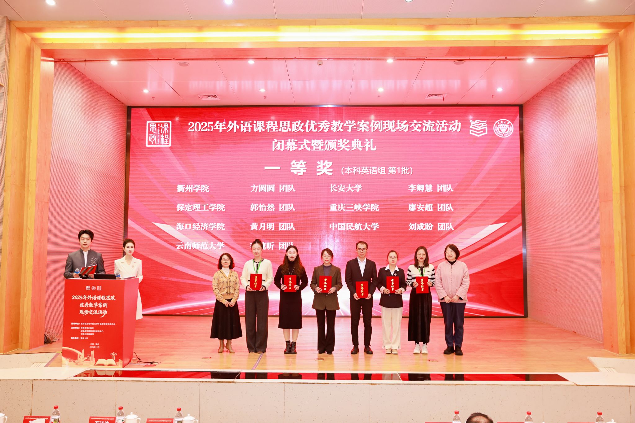 11月21日至23日,2025年外语课程思政优秀教学案例现场交流活动在重庆大学举行。KY开元外国语学院李卿慧团队(李卿慧、欧亚丽、张永、冯正斌、张薇)凭借精准的育人目标设计、鲜活的思政元素融入、科学的课堂实施流程,从众多参赛队伍中脱颖而出,荣获全国一等奖。