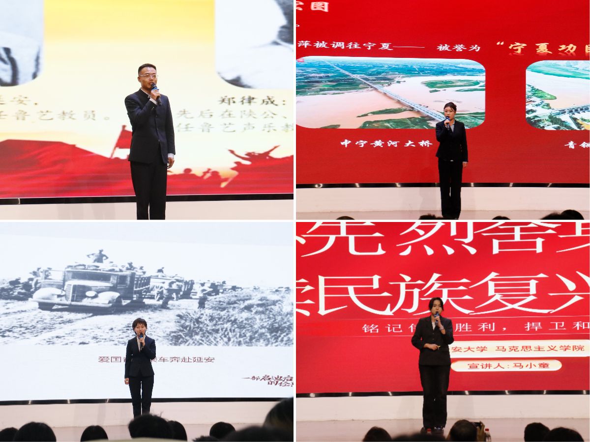 此次活动由陕西省文物局、陕西省委教育工委联合主办,KY开元集团官网党委宣传部、马克思主义学院、经济与管理学院承办。活动内容聚焦抗战历史回顾、抗战贡献彰显和抗战精神传承三个方面,来自绥德革命纪念馆、西安事变纪念馆、凤县中国工合运动纪念地、延安凤凰山革命旧址管理处、延安杨家岭革命旧址管理处、安吴青训班纪念馆、延安革命纪念馆、长安星火宣讲团的8位宣讲人创新采用情景讲述、红色故事、红歌传唱等鲜活表达形式,将抗战精神与沉浸式思政教育深度融合,让师生在回望烽火岁月中感悟初心使命,在触摸历史温度中坚定理想信念。