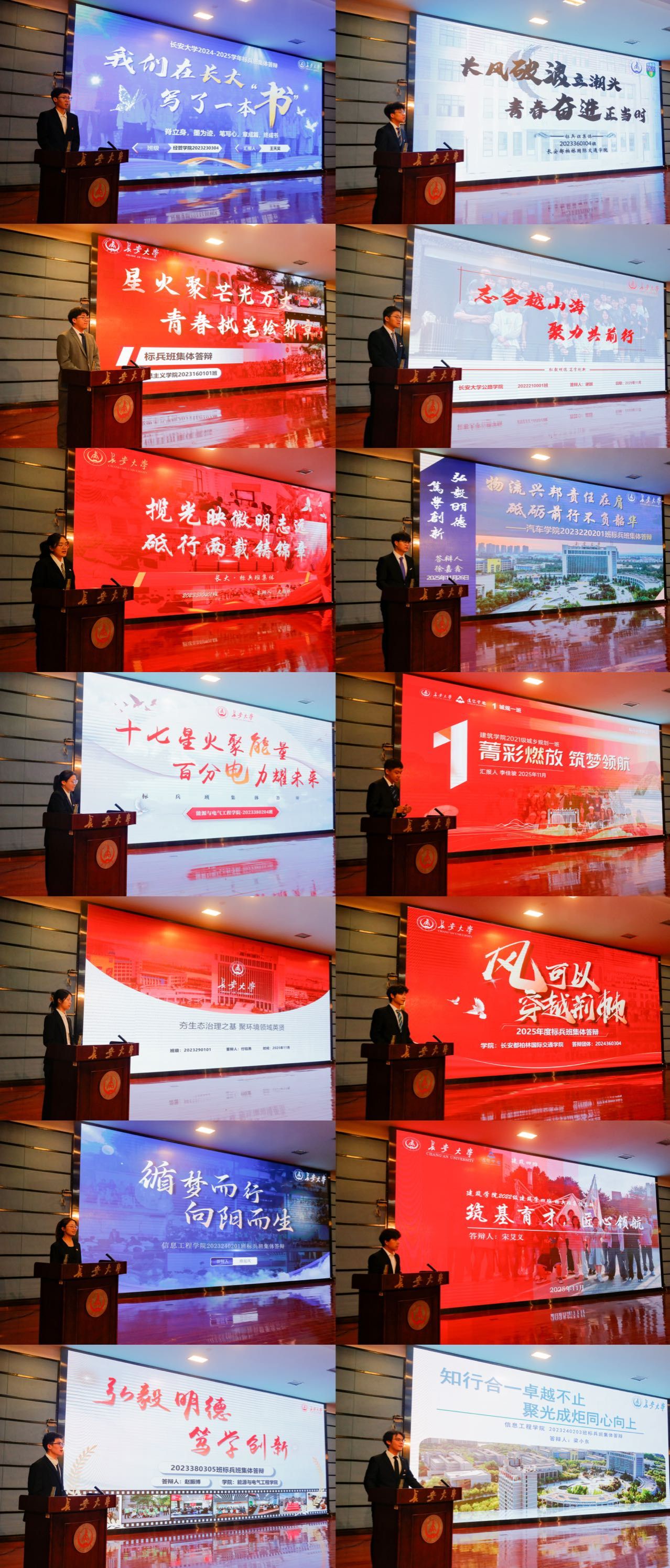 与会评委为公路学院2022210001班等10个2024-2025学年本科生标兵班集体颁奖。