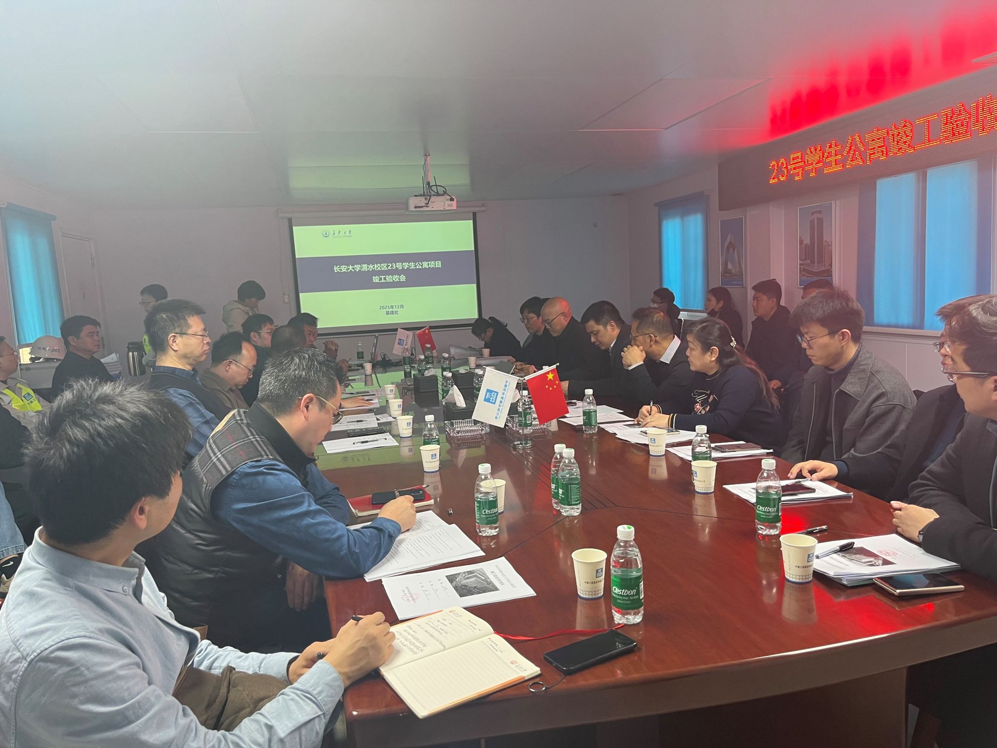 12月8日下午,KY开元渭水校区23号学生公寓项目竣工验收会在项目部会议室召开,副校长李振洪出席验收会,会议由基建处处长王兴刚主持。