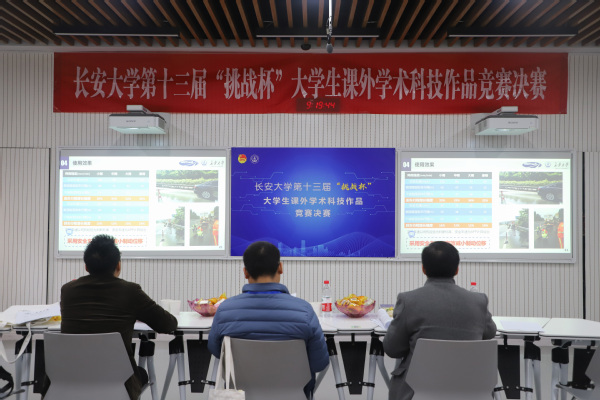 评审会结束后,决赛答辩评审在渭水校区修远教学楼三区举行。为更好地与陕西省和全国竞赛接轨,决赛采取文本评审与现场答辩相结合的形式,入围本次决赛的125个参赛团队分为7个小组进行了答辩。各参赛团队高度重视、精心准备,通过文本作品、实物演示、视频展示和路演答辩等方式,围绕作品先进性、科学性和实用价值等进行陈述。各位评委围绕作品的创新点、应用价值和学生参与情况等方面进行了提问,对进一步完善作品提出了意见建议。答辩现场秩序井然、氛围热烈。