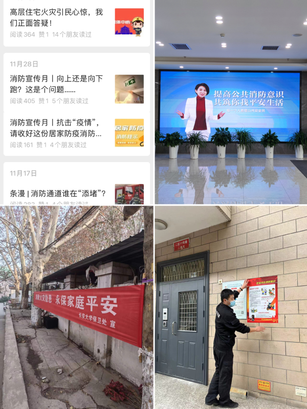 “119消防宣传月”活动开展以来,各校区利用电子屏幕、横幅、海报等方式进行消防安全宣传,并通过校保卫处“平安KY开元”微信公众号,就畅通消防通道、居家防疫消防知识、高层住宅逃生自救等内容推送了系列宣传图文6篇,营造了人人关心消防、时时防范风险的校园文化环境。