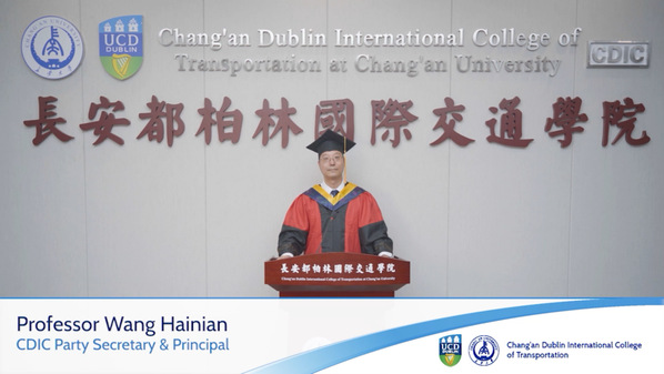 爱尔兰驻华大使Ann Derwin在致辞中表示,长安都柏林国际交通学院首届本科生的毕业是一个重要历史性时刻,也是爱尔兰和中国在高等教育国际合作领域的新成果。爱尔兰政府欢迎长安都柏林国际交通学院毕业生前往爱尔兰深造和工作,并为毕业生提供多种多样的深造及工作机会。同时,大使邀请同学们加入中爱校友会,通过都柏林大学全球校友网络,建立全新的联系,结交新的朋友,持续发展和提升职业生涯。