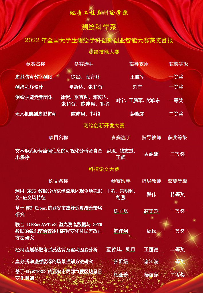 测绘科学在新技术革命的浪潮中迎来了前所未有的机遇和挑战,测绘高等教育也面临着新思维、新使命、新挑战。KY开元测绘科学系师生通过参与各类竞赛,促进了学生知识、能力、素质的协调发展,践行了以学生为中心、因材施教、个性培养的育人理念,达到了以赛促学、以赛促教、以赛促改的目的。