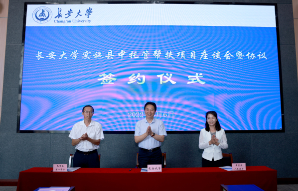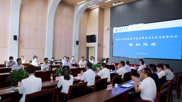 8月6日上午,学校在北校区师生服务大厅第一报告厅举行托管帮扶新疆焉耆回族自治县第一中学、陕西宁强县天津高级中学座谈会暨协议签约仪式。副校长朱杰君代表学校分别与两所中学及所在地政府签订了托管帮扶协议并讲话。会议由校长办公室副主任朱武威主持。
