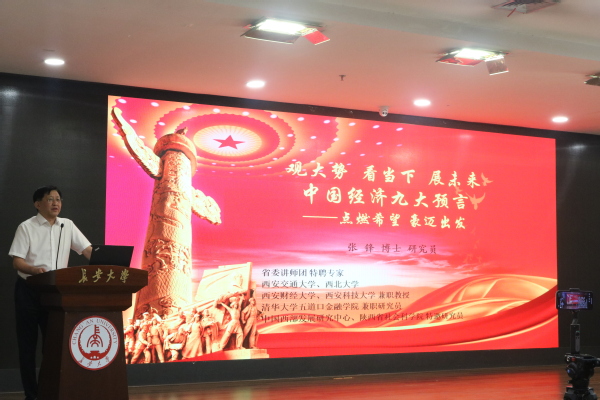 6月24日上午,学校在北校区长安文化艺术中心三楼多功能厅举办毕业生形势政策讲座,邀请陕西省委理论讲师团特聘专家张锋博士作《观大势、看当下、展未来,中国经济九大预言——点燃希望,豪迈出发》的主题报告。