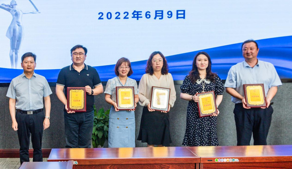 徐卫宣读了2021年招生就业工作先进集体表彰决定,黎开谊为获表彰单位颁发奖牌。