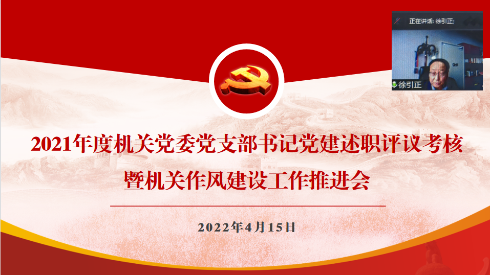 2022年4月15日下午,机关党委线上召开2021年度党支部书记党建述职评议考核暨机关作风建设工作推进会。校党委副书记徐引正,校党委常委李文雄、王耀文,机关党委委员、纪委委员,机关各党支部书记近50人参加了会议。会议由机关党委书记李金和主持。
