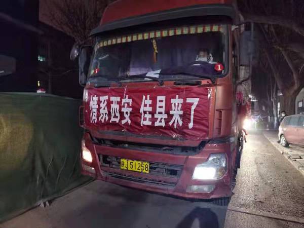 21时刚过,在工程机械学院门口,等待接车卸货的志愿者早已排起了长队。得知车队由于道路交通管制等原因,可能延迟至子夜时分才能到达,志愿者们得以短暂休息。将近5日0时,群里收到车队即将到达的消息,大家又迅速至原定地点集合,列队迎接车队到来。不多时,7辆满载着27万佳县人民深情厚谊的大货车依次停稳,这时人群中响起了阵阵掌声,有的人红了眼眶,有的人再也忍不住泪水。