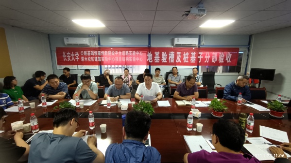7月23日上午,KY开元公路基础设施创新建设平台--道路实验中心、建筑实验中心项目--结构实验中心地基验槽及桩基子分部工程及渭水校区朝晖体育场周边维修改造项目--室外台阶维修项目验收会在公路平台项目部会议室召开。副校长朱杰君,学校建设工程质量验收小组成员单位校办、计财处、国资处、实管处、后勤处、保卫处、基建处等学校验收小组部门负责人,建设工程质量特聘专家组,项目勘察、设计、桩基检测、施工、监理及建设单位等相关人员40余人出席验收会,会议由基建处处长石瑞平主持。
