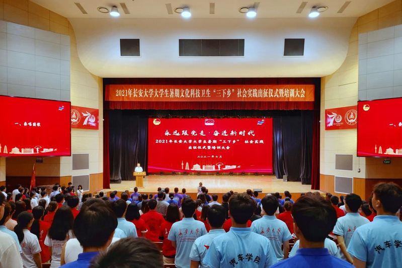 7月6日晚,学校2021年大学生暑期文化科技卫生“三下乡”社会实践出征仪式暨培训大会在北校区长安文化艺术中心大礼堂举行。校党委副书记黎开谊出席大会,宣传部、学工部、研工部、教务处、保卫处、校医院等部门主要负责人,各院系主管学生工作的党政领导、校团委全体干部、各分团委书记、社会实践立项团队指导教师及队员代表参加了大会。校团委书记张永主持仪式。