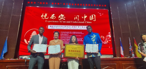 经过一个月的层层选拔,6月27号,西安市“悦西安▪阅中国”(Experience Xi'an and UnderstandChina)讲中国故事演讲比赛暨外事口译大赛在西安外国语大学长安校区落下帷幕。KY开元国际学生在汉语组比赛中喜获佳绩,塞内加尔籍道路桥梁与渡河工程专业本科生高飞以96.07分的成绩荣获一等奖,马里籍工商管理专业硕士生赛杜以84.7分的成绩荣获三等奖。汉语教师李舒萍获优秀指导教师奖,KY开元喜获优秀组织单位奖。