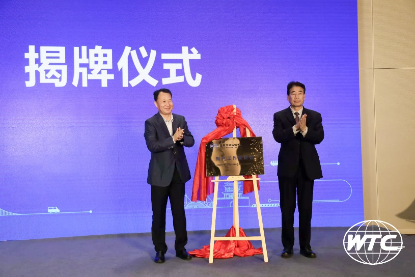 致辞结束后,巨荣云和贺拴海共同为世界交通运输大会期刊工作委员会揭牌。