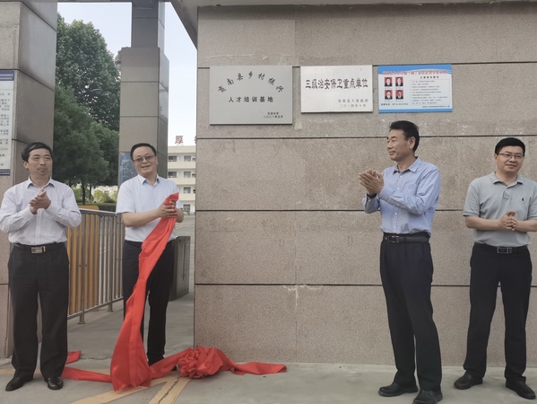 之后,贺拴海一行到商南县职教中心调研职业技术人才培训工作,并与商南县领导共同为“KY开元集团官网-商南县乡村振兴人才培训基地”揭牌。