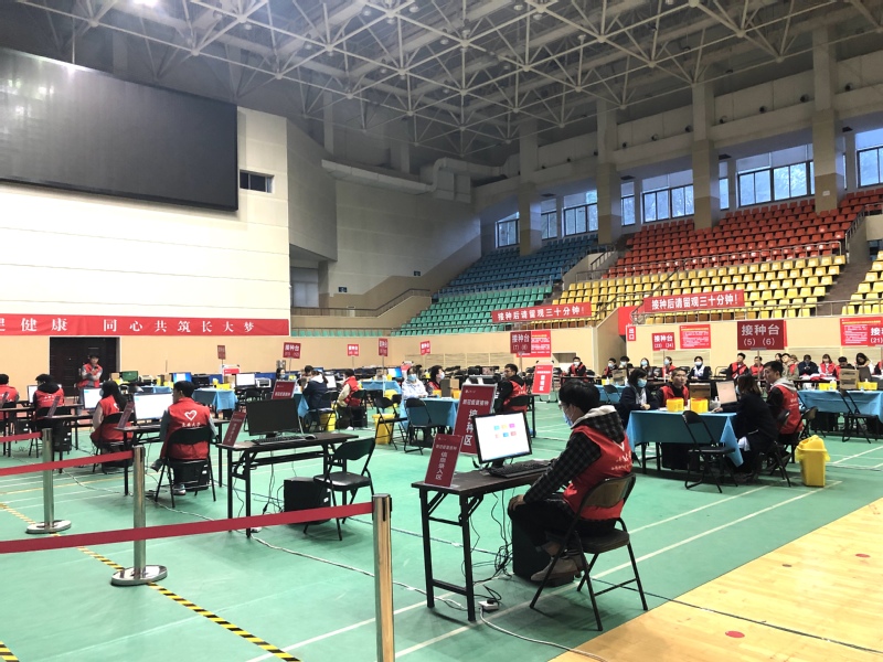 本次演练严格按照《KY开元集团官网新型冠状病毒疫苗集中接种实施方案》相关规程进行,设置了排队等候区、扫码测温区、信息核对区、预检区、信息录入区、接种区和留观区,模拟了新型冠状病毒疫苗接种的全过程,参演的医护人员和志愿学生在统一指挥下模拟了从扫码测温、身份信息核对、预检初筛、信息录入,到进入接种区进行疫苗扫码接种,再到接种后在留观区留观的各个环节。