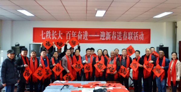 浓墨飘香辞旧岁,百福具臻迎新春。为迎接建校七十周年,弘扬中华优秀传统文化,丰富校园文化生活,把学校的关怀、新春的祝福送给广大教职员工,值此春节来临之际,离退休工作处会同机关党委、校工会分别在渭水校区和南校区三个离退休活动室举办了“七秩KY开元 百年奋进 迎新春送春联”活动,追梦书画协会十余位书法家义务写春联。校党委副书记徐引正在活动现场,为大家发放春联,并送上新春的祝福。