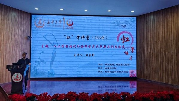 5月20日上午,由研究生院/研究生工作部主办、外国语学院承办、校研究生科学技术协会协办的“虹”学讲堂第463讲在南校区东院伯声报告厅顺利举办。西北工业大学林嘉新教授作了题为“人工智能时代外语研究范式革新与形态演变”的报告,外国语学院王红孝教授主持,相关学院共180余名师生参加讲座。