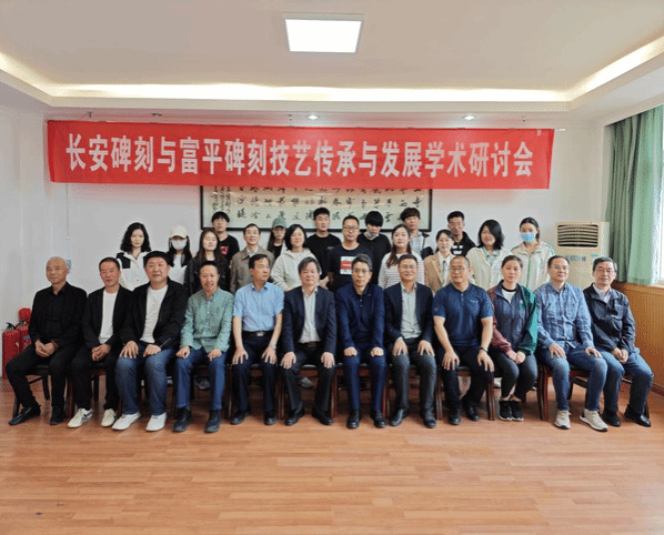 富平碑刻技艺与发展学术研讨会在5月23日下午召开,人文学院党委书记杜智民、人文学院院长刘兰剑、人文学院副院长侯长生、人文学院教师代表以及美术与书法专业研究生参加了会议。中山大学中国非物质文化遗产研究中心主任宋俊华、陕西师范大学教育部中华优秀文化传承基地负责人孙清潮、原西安碑林博物馆馆长赵力光、西安交大城市学院中华优秀文化传承基地负责人解安宁、陕西汉唐石刻博物馆馆长秦航、富平文旅局副局长张婷、富平石刻非物质文化传承人杨小兵、富平石刻非物质文化传承人马建军、传拓实践课程课外指导教师张鹏勃等9名校外专家和人文学院教师,就“非遗与高校学科建设”“基地建设对双一流建设的支撑”“打造馆校合作新模式”“富平石刻技艺”等议题进行了广泛、深入的研讨。会后,专家们饶有兴致地参观了长安重光·唐代书法经典与富平碑刻技艺传承体验展。