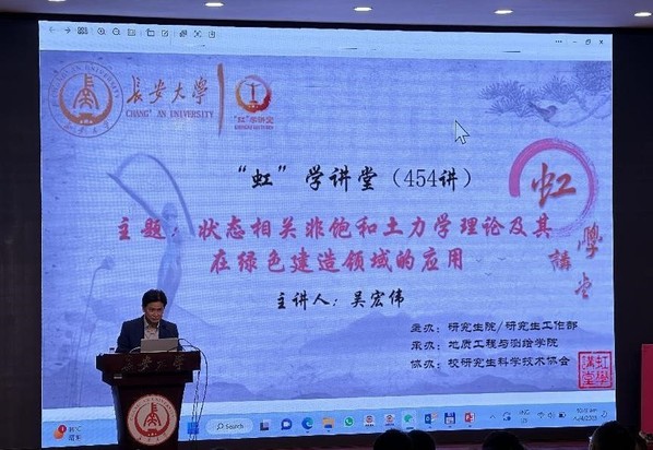 4月26日下午,由研究生院/研究生工作部主办、地质工程与测绘学院承办、校研究生科学技术协会协办的“虹”学讲堂第454讲在南校区东院伯声报告厅顺利举办。英国皇家工程院院士吴宏伟作了题为“状态相关非饱和土力学理论及其在绿色建造领域的应用”的报告,相关学院共180余名师生参加讲座。