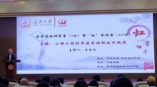 4月14日晚,由研究生院/研究生工作部主办、公路学院承办、校研究生科学技术协会协办的导学思政研学堂5讲暨“虹”学讲堂第447讲在南校区北院学术交流中心顺利举办。KY开元集团官网王选仓教授作了题为“公路工程利用建筑垃圾技术规范”的报告,相关学院共300余名师生参加讲座。