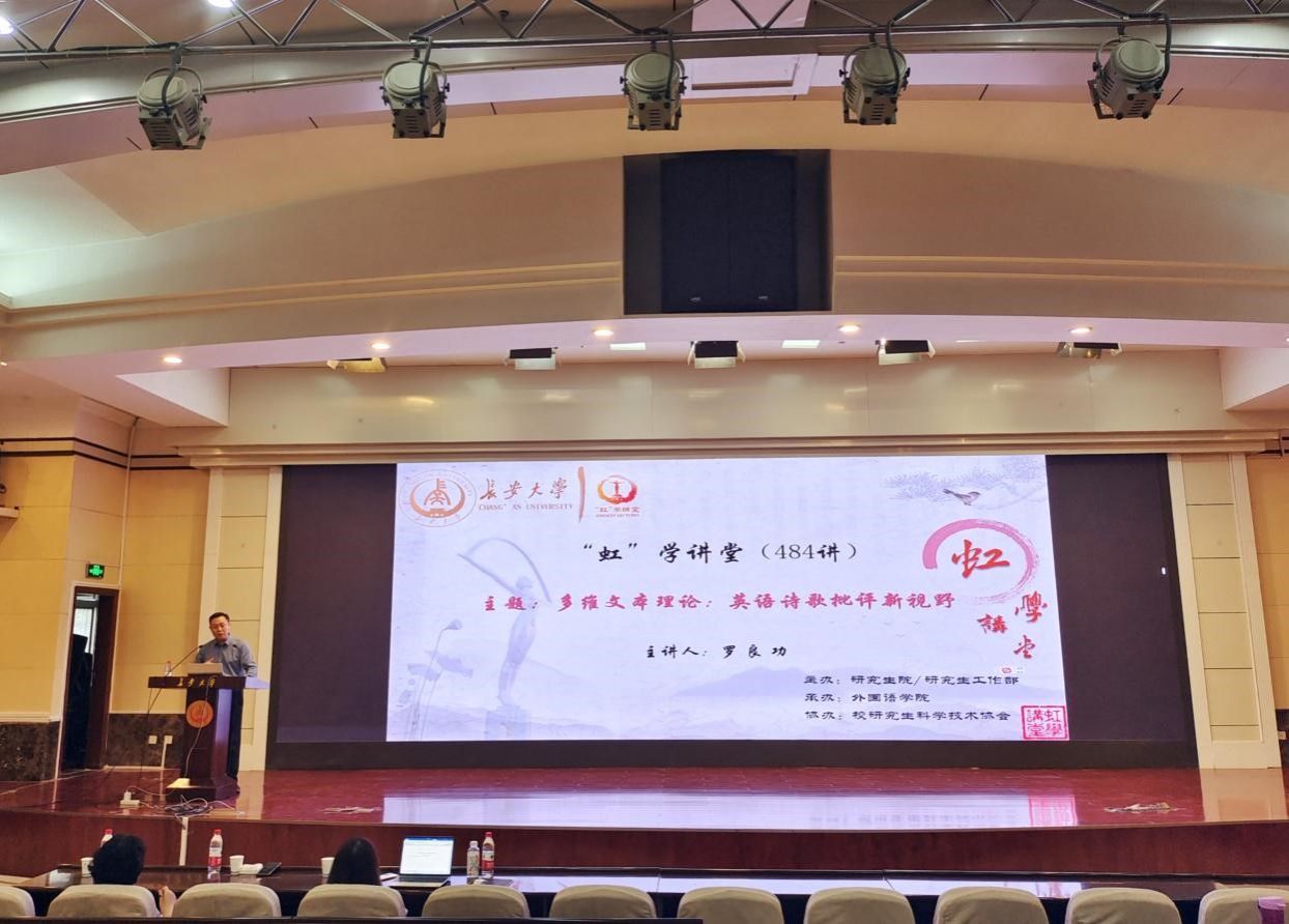 9月22日下午,由研究生院/研究生工作部主办、外国语学院承办、校研究生科学技术协会协办的“虹”学讲堂第484讲在南校区北院学术交流中心顺利举办。华中师范大学罗良功教授作了题为“多维文本理论:英语诗歌批评新视野”的报告,外国语学院副院长马瑛主持,相关学院共300余名师生参加讲座。