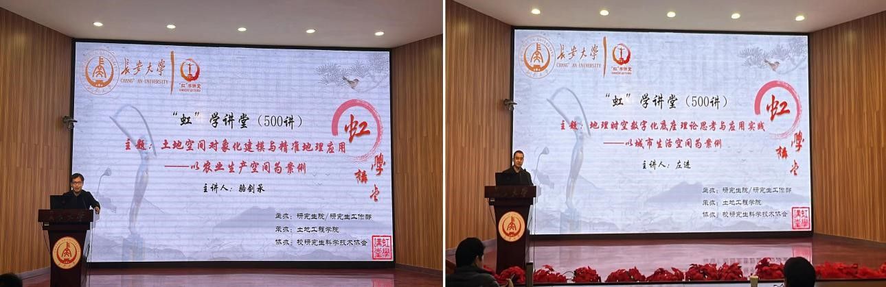 “虹”学讲堂500讲邀请中国科学院空天信息创新研究院骆剑承研究员、天津大学左进副教授分别作题为“土地空间对象化建模与精准地理应用——以农业生产空间为案例”“地理时空数字化底座理论思考与应用实践——以城市生活空间为案例”的报告。土地工程学院副院长赵永华教授主持讲座。骆剑承研究员的报告主要围绕土地空间对象化建模的研究背景、科学思考、模型研究及应用实践四个方面展开,他指出,只有抓住核心科学目标,有效进行学科交叉融合,才能实现科技成果的产出。左进副教授的报告主要围绕发展目标、双轮驱动、关键要素、应用实践及成果产出五个方面展开,他强调,未来要实现地理时空数字化底座的精准化应用,需要发展“地理推测-遥感探测-地面观测”闭环的计算流程以及“人-地-钱-事”综合的应用模式。