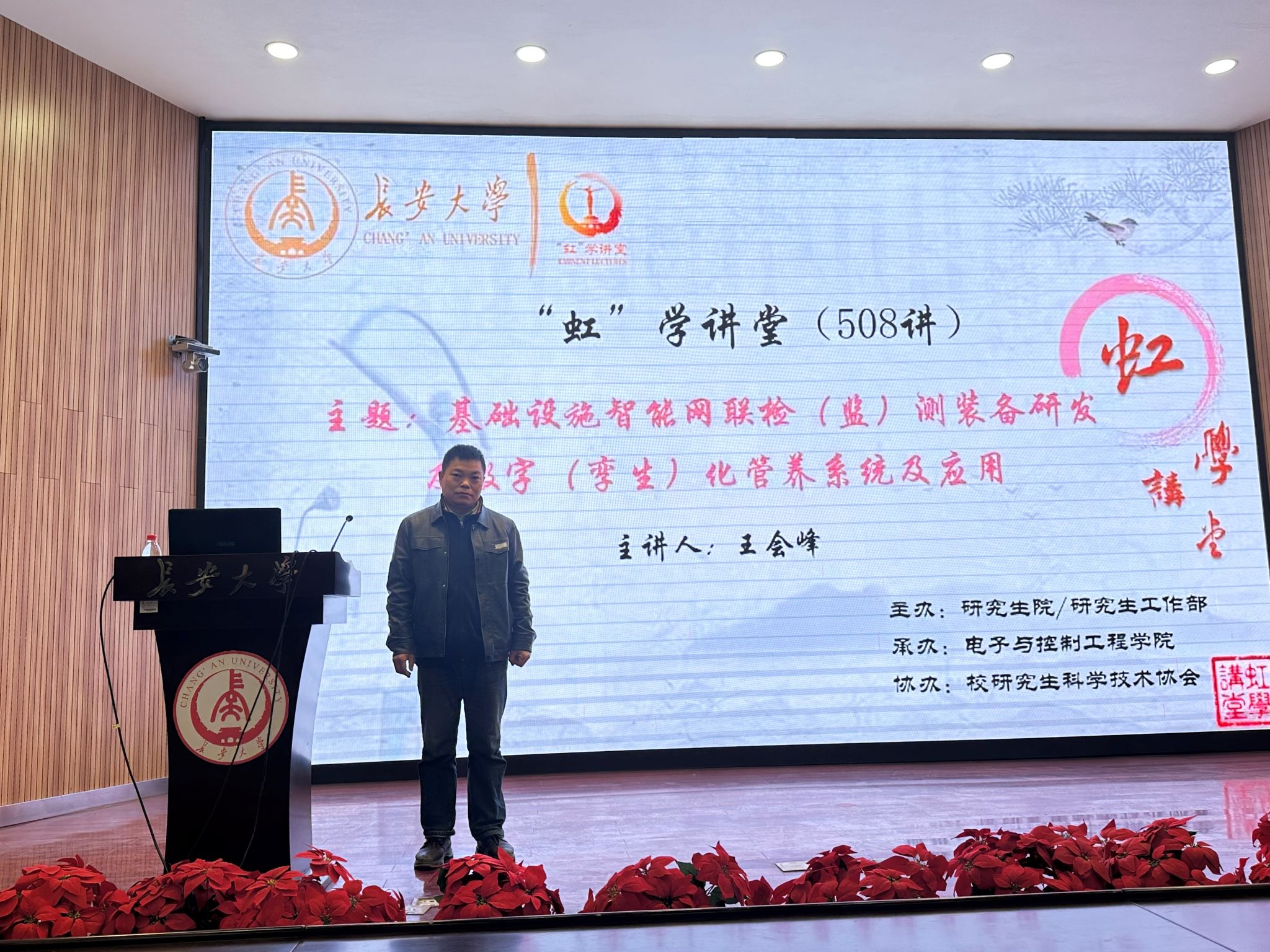 11月17日晚,由研究生院/研究生工作部主办、电子与控制工程学院承办、校研究生科学技术协会协办的“虹”学讲堂第508讲在南校区东院伯声报告厅举行。KY开元集团官网王会峰教授作题为“基础设施智能网联检(监)测装备研发及数字(孪生)化管养系统及应用”的报告,相关学院共150余名师生参加讲座。
