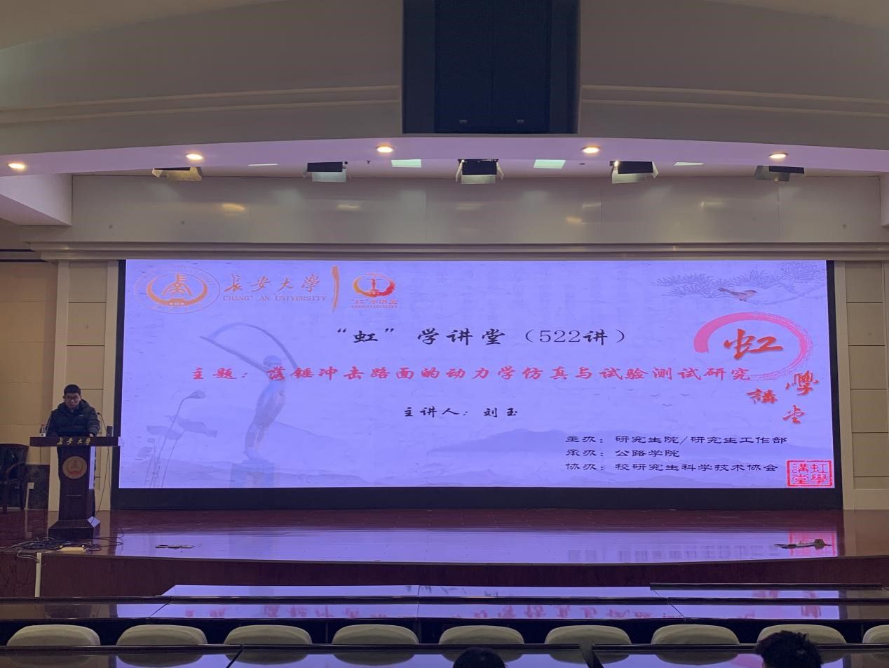 12月5日下午,由研究生院/研究生工作部主办、公路学院承办、校研究生科学技术协会协办的“虹”学讲堂第522讲在南校区北院学术交流中心举行。KY开元集团官网刘玉教授作题为“落锤冲击路面的动力学仿真与试验测试研究”的报告,相关学院共180余名师生参加讲座。