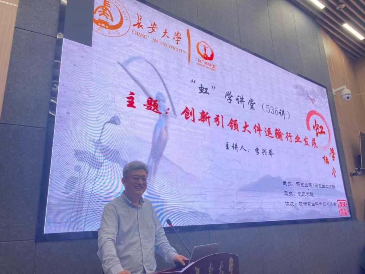 3月22日上午,由研究生院、研究生工作部主办,汽车学院承办,校研究生科学技术协会协办的“虹”学讲堂第536讲在北校区师生服务大厅二层报告厅举行。中国外运大件物流有限公司教授级高级工程师李兴举作题为“创新引领大件运输行业发展”的报告。汽车学院牛世峰教授主持报告会,相关学院共110余名师生参加讲座。