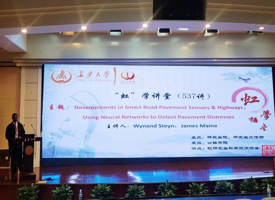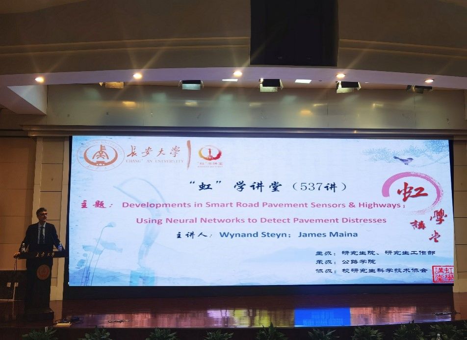 3月23日上午,由研究生院、研究生工作部主办,公路学院承办,校研究生科学技术协会协办的“虹”学讲堂第537讲在南校区北院学术交流中心举行。南非比勒陀利亚大学Wynand Steyn与James Maina教授分别作题为“Developments in Smart Road Pavement Sensors & Highways”与“Using Neural Networks to Detect Pavement Distresses”的报告,公路学院马峰教授主持报告会,相关学院共200余名师生参加讲座。