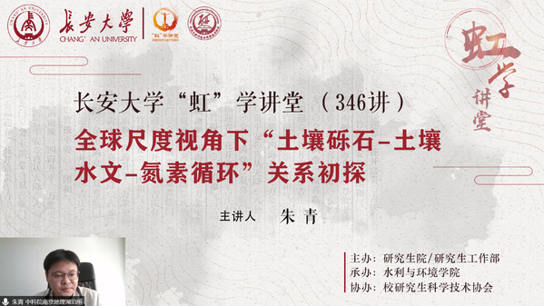 3月10日下午,由研究生院/研究生工作部主办、水利与环境学院承办、校研究生科学技术协会协办的“虹”学讲堂第346讲以线上讲座形式顺利举办。中科院南京地理与湖泊研究所朱青研究员作了题为“全球尺度视角下‘土壤砾石-土壤水文-氮素循环’关系初探”的报告,水环学院罗平平教授主持,相关学院共计300余名师生参加。