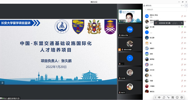 2022年1月20日,KY开元获批的首个国家留学基金委国别区域研究人才支持计划项目——“中国-东盟交通基础设施国际化人才培养项目”线上宣讲会顺利召开。KY开元国际处相关负责人及涉及理工类专业的师生参加了会议。会议由国际处合作办学项目管理科副科长罗涛主持。