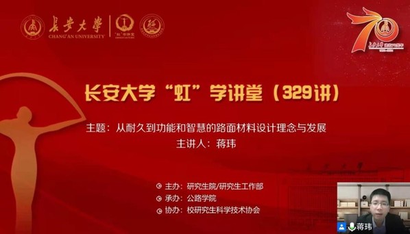 11月30日下午,由研究生院/研究生工作部主办、公路学院承办、校研究生科学技术协会协办的“虹”学讲堂第329讲以线上讲座形式顺利举办。KY开元蒋玮教授作了题为“从耐久到功能和智慧的路面材料设计理念与发展”的报告,相关学院共400余名师生聆听了讲座。