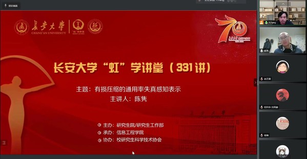 12月3日上午,由研究生院/研究生工作部主办、信息工程学院承办、校研究生科学技术协会协办的“虹”学讲堂第331讲以线上讲座形式顺利举办。麦克马斯特大学陈隽教授作了题为“有损压缩的通用率失真感知表示”的报告,相关学院共390余名师生参加了讲座。