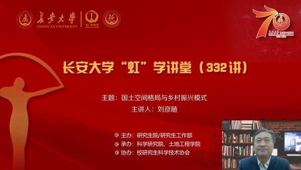 12月6日下午,由研究生院/研究生工作部主办、科学研究院和土地工程学院承办、校研究生科学技术协会协办的“虹”学讲堂第332讲以线上线下讲座形式顺利举办。中国科学院地理科学与资源研究所刘彦随研究员作了题为“国土空间格局与乡村振兴模式”的报告,相关学院共200余名师生参加了讲座。