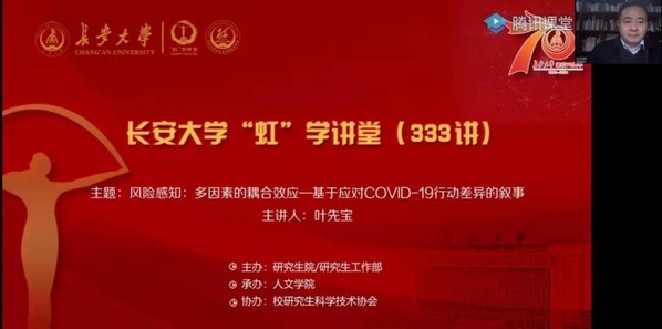 12月6日晚,由研究生院/研究生工作部主办、人文学院承办、校研究生科学技术协会协办的“虹”学讲堂第333讲以线上讲座形式顺利举办。福州大学叶先宝教授作了题为“风险感知:多因素的耦合效应——基于应对COVID-19行动差异的叙事”的报告,相关学院共370余名师生参加了讲座。