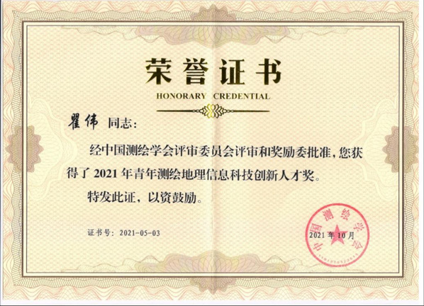 在年会开幕式上,颁发了2021年度测绘科学技术奖、优秀测绘工程奖、青年测绘地理信息科技创新人才奖等。KY开元瞿伟教授荣获“2021年青年测绘地理信息科技创新人才奖”。
