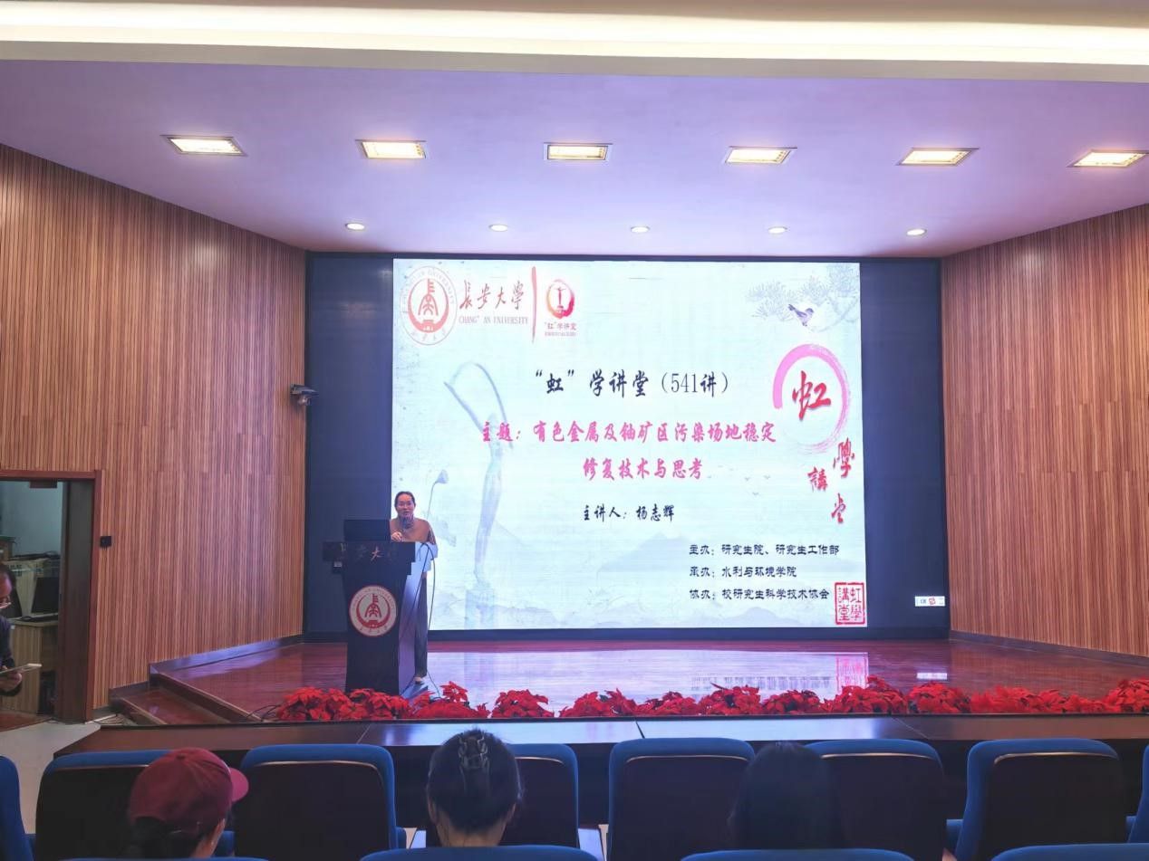 4月8日上午,由研究生院、研究生工作部主办,水利与环境学院承办,校研究生科学技术协会协办的“虹”学讲堂第541讲在南校区东院伯声报告厅举办。中南大学杨志辉教授作了题为“有色金属及铀矿区污染场地稳定修复技术与思考”的报告,相关学院共160余名师生参加讲座。