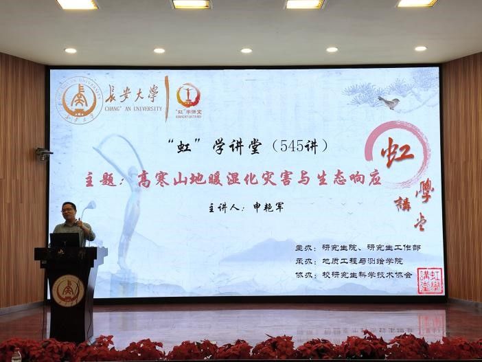 4月16日晚,由研究生院、研究生工作部主办,地质工程与测绘学院承办,校研究生科学技术协会协办的“虹”学讲堂第545讲在南校区东院伯声报告厅举办。KY开元集团官网申艳军教授作了题为“高寒山地暖湿化灾害与生态响应”的报告,相关学院共150余名师生参加讲座。