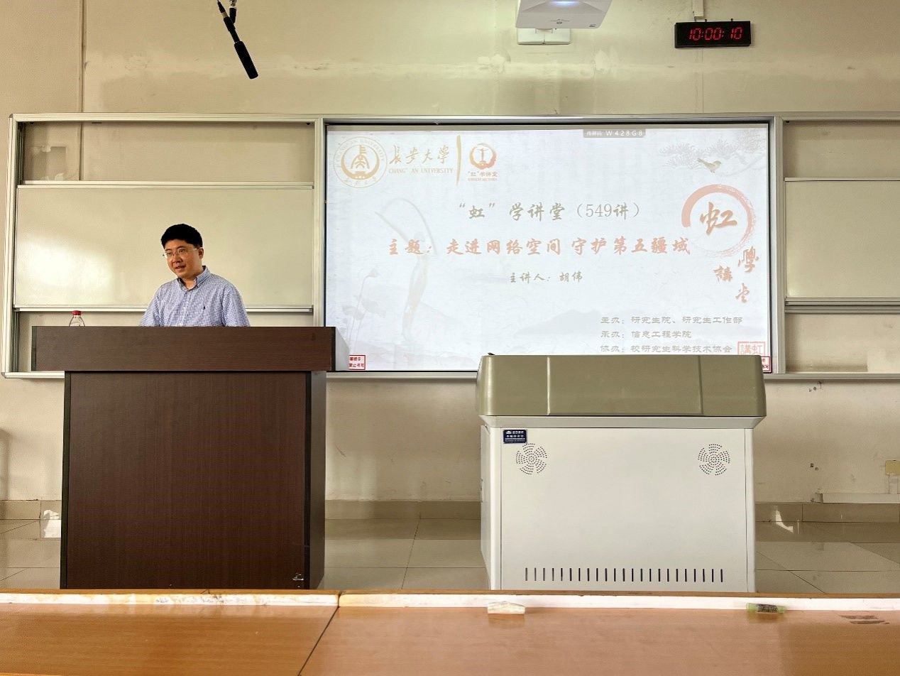 4月20日上午,由研究生院、研究生工作部主办,信息工程学院承办,校研究生科学技术协会协办的“虹”学讲堂第549讲在北校区明远教学楼3201教室举办。西北工业大学胡伟教授作了题为“走进网络空间 守护第五疆域”的报告,相关学院共200余名师生参加讲座。