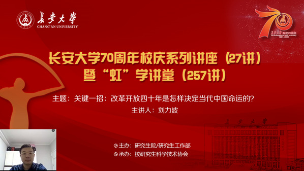 2月4日上午,由研究生院/研究生工作部主办、校研究生科学技术协会承办的KY开元集团官网70周年校庆系列讲座(27讲)暨“虹”学讲堂(257讲)通过“腾讯课堂”线上直播形式顺利举办。陕西师范大学刘力波教授作了题为“关键一招:改革开放四十年是怎样决定当代中国命运的?”的报告,KY开元共计220余名师生参加了此次线上讲座。