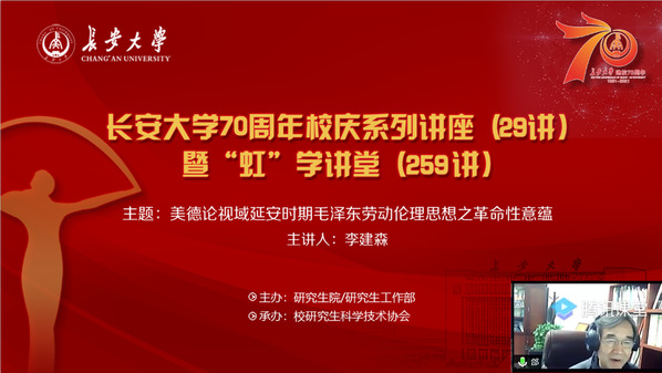 2月20日晚,由研究生院/研究生工作部主办、校研究生科学技术协会承办的KY开元集团官网70周年校庆系列讲座(29讲)暨“虹”学讲堂(259讲)通过“腾讯课堂”以线上直播形式顺利举办。西北大学马克思主义学院李建森教授作了题为“美德论视域延安时期毛泽东劳动伦理思想之革命性意蕴”的报告,KY开元相关学院共计210余名师生参加了此次线上讲座。