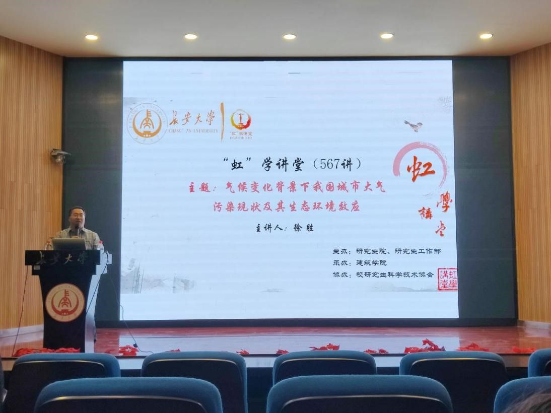 5月24日上午,由研究生院、研究生工作部主办,建筑学院承办,校研究生科学技术协会协办的“虹”学讲堂第567讲在南校区东院伯声报告厅举办。中国科学院大学徐胜教授作题为“气候变化背景下我国城市大气污染现状及其生态环境效应”的报告,建筑学院苗纯萍教授主持,相关学院共180余名师生参加讲座。
