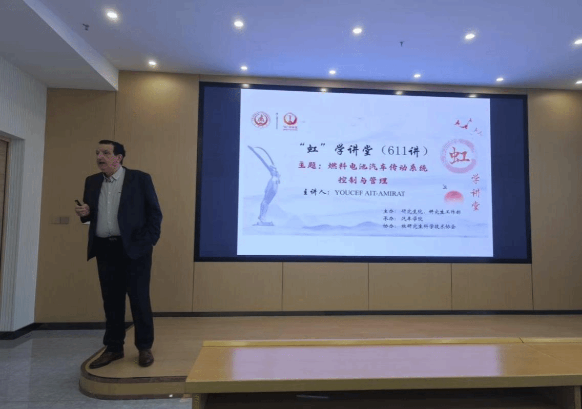 2月26日上午,由研究生院、研究生工作部主办,汽车学院承办,校研究生科学技术协会协办的“虹”学讲堂第611讲在北校区汽车学院楼310室举行。法国贝尔福蒙贝利亚技术大学YOUCEF AIT-AMIRAT副教授作题为“燃料电池汽车(FCEV)传动系统设计”的报告,汽车学院牛世峰教授主持报告会,相关学院共160余名师生参加讲座。