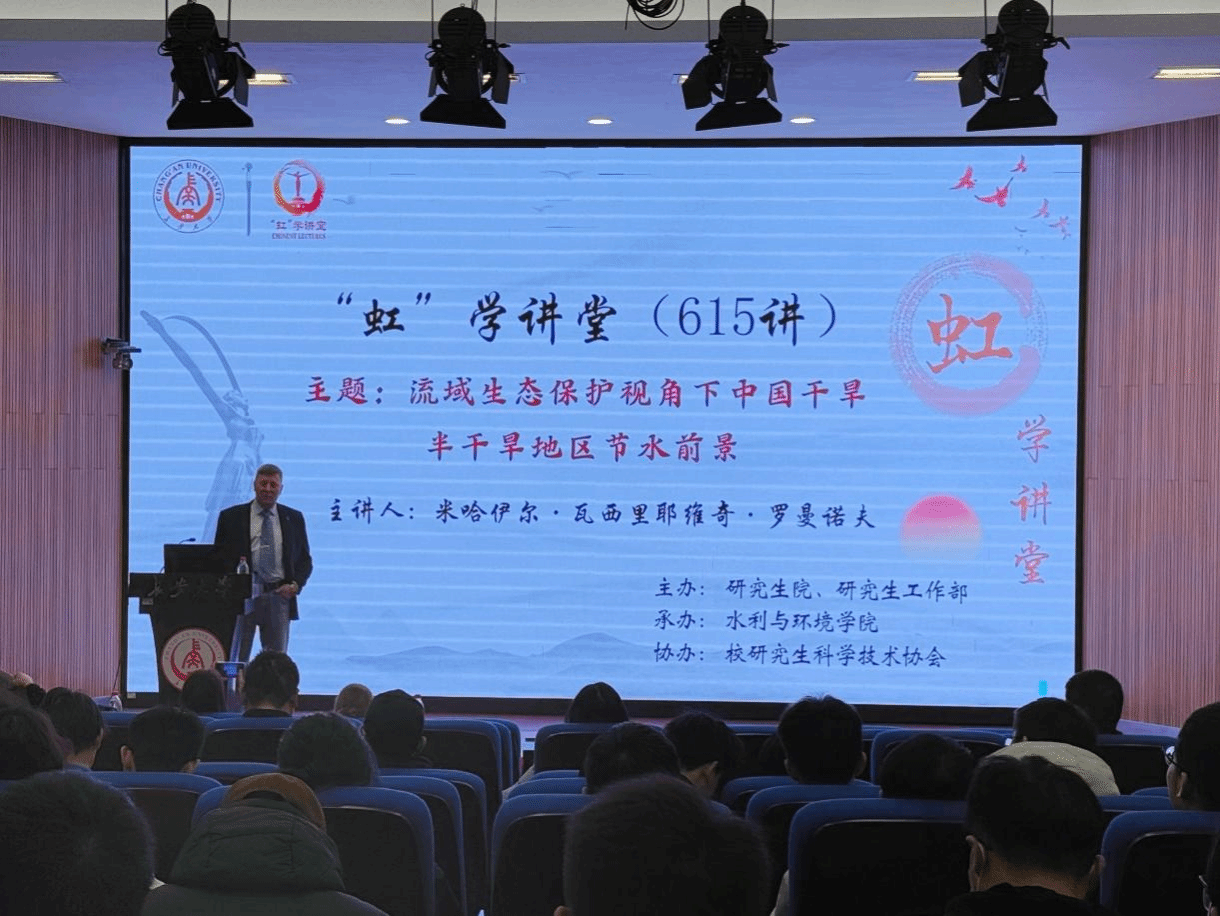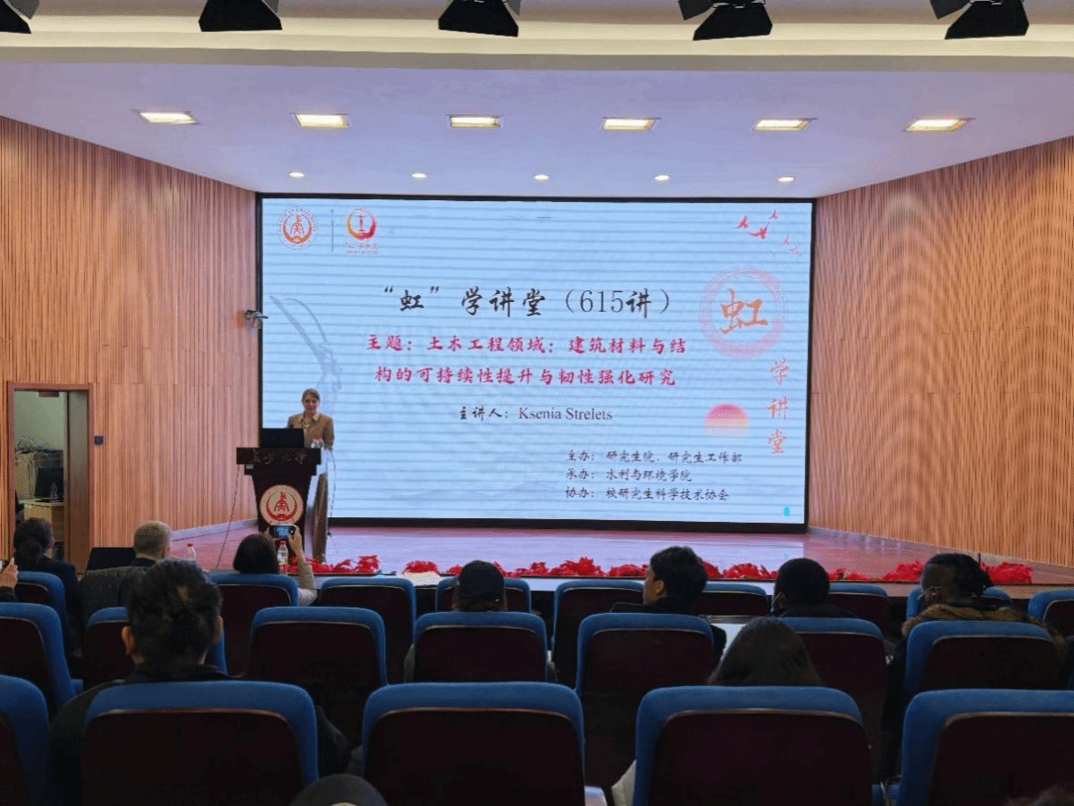 3月18日上午,由研究生院、研究生工作部主办、水利与环境学院承办,校研究生科学技术协会协办的“虹”学讲堂第615讲在南校区东院伯声报告厅举办。圣彼得堡彼得大帝理工大学米哈伊尔·瓦西里耶维奇·罗曼诺夫副教授和Ksenia Strelets副教授分别作题为“流域生态保护视角下中国干旱半干旱地区节水前景”“土木工程领域:建筑材料与结构的可持续性提升与韧性强化研究”的报告,相关学院共170余名师生参加讲座。