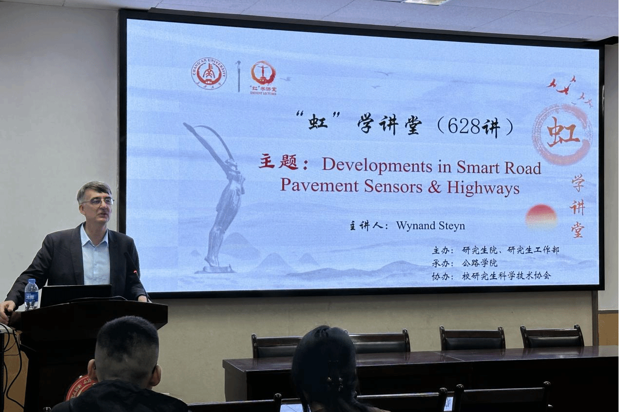 4月14日下午,由研究生院、研究生工作部主办,公路学院承办,校研究生科学技术协会协办的“虹”学讲堂第628讲在南校区北院交通科技大厦602会议室举办。南非比勒陀利亚大学Wynand Steyn教授应邀作了题为“Developments in Smart Road Pavement Sensors & Highways”的报告。会议由KY开元集团官网公路学院马峰教授主持,相关学院共120余名师生参加讲座。