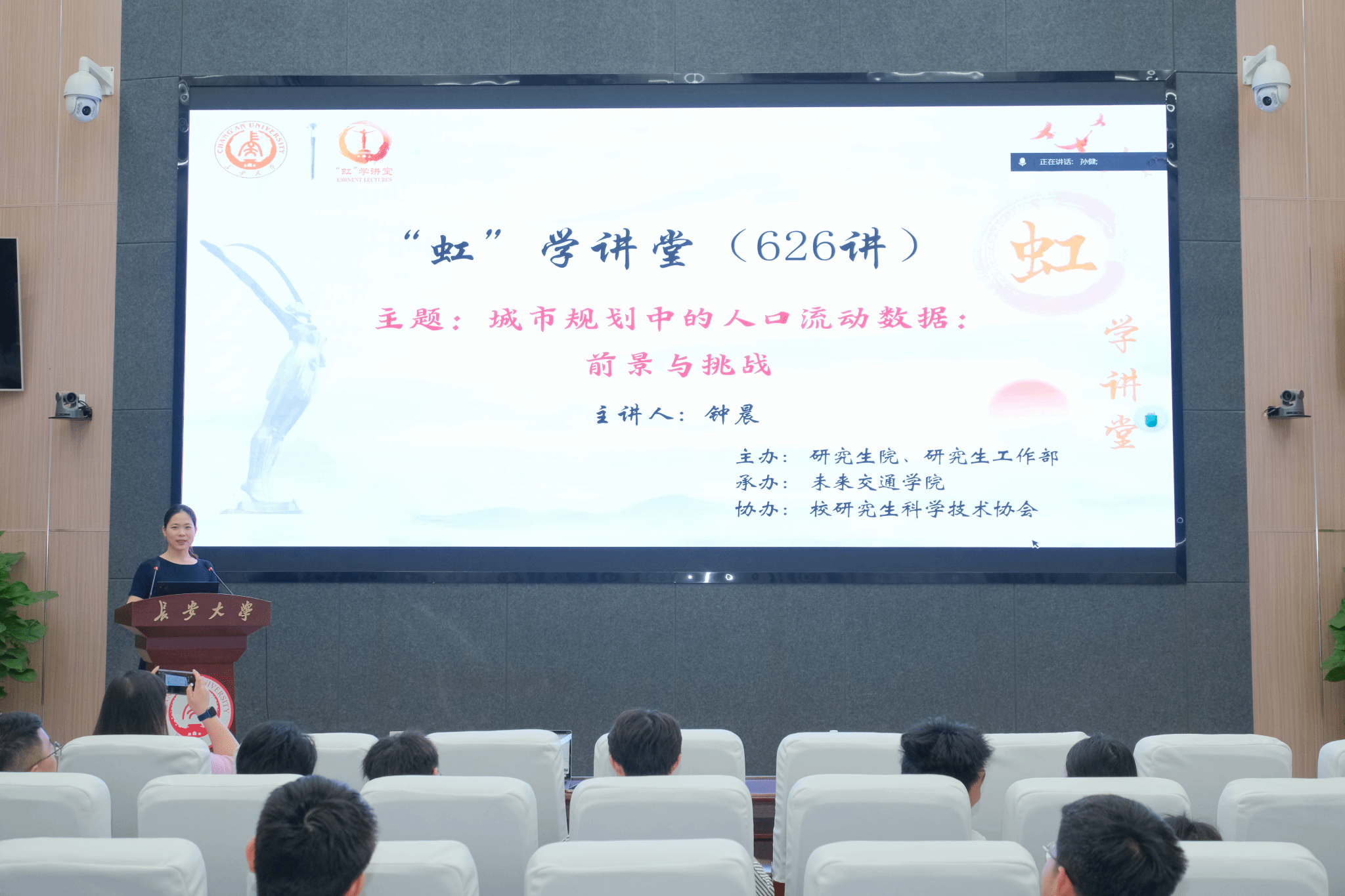 4月9日下午,由研究生院、研究生工作部主办,未来交通学院承办,校研究生科学技术协会协办的“虹”学讲堂第626讲在北校区师生服务大厅第二报告厅举办。伦敦大学钟晨副教授作题为“城市规划中的人口流动数据:前景与挑战”的报告,未来交通学院执行院长孙健主持会议,相关学院共120余名师生参加讲座。