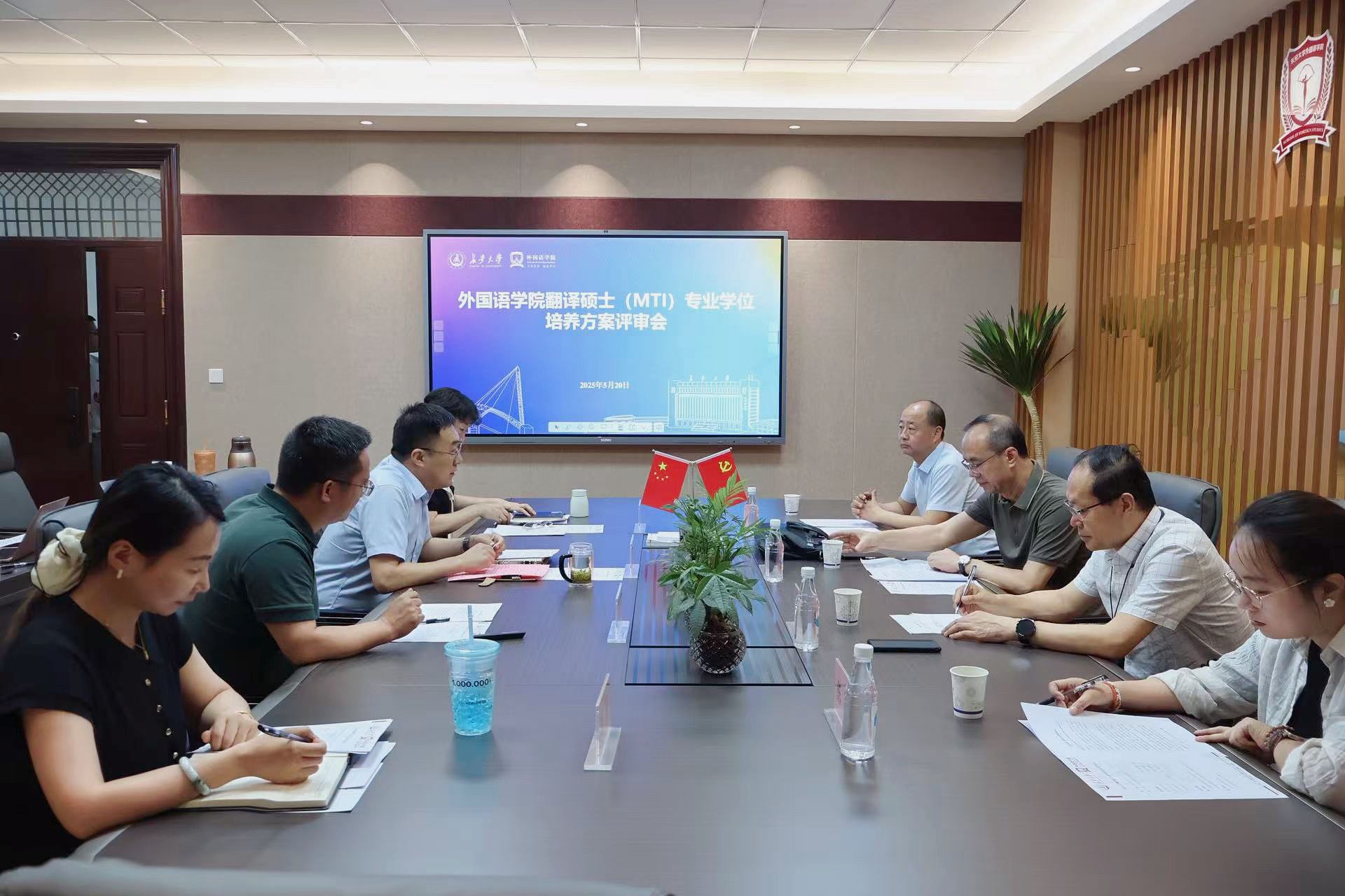 5月20日,外国语学院在北校区学院215会议室举办翻译硕士(MTI)专业学位培养方案专家评审会。全国翻译硕士专业学位教育指导委员会委员、西安外国语大学党争胜教授(线上参会),西安理工大学李庆明教授,西安工程大学胡伟华教授,西安财经大学杨宪平教授和中译语通科技(陕西)有限公司陈栋总监担任评审专家。学院党委书记张永、院长冯正斌及骨干教师代表共同参会。