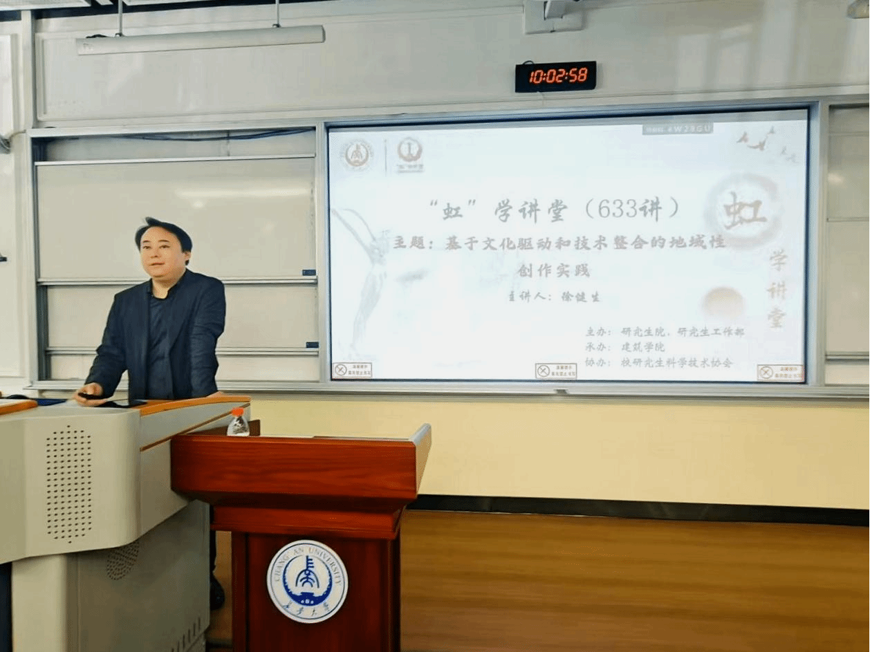 4月23日上午,由研究生院、研究生工作部主办,建筑学院承办,校研究生科学技术协会协办的“虹”学讲堂第633讲在南校区北院B171教室举办。西安建筑科技大学徐健生教授作了主题为“基于文化驱动和技术整合的地域性创作实践”的报告,建筑学院刘启波教授主持报告会,相关学院共100名师生参加讲座。