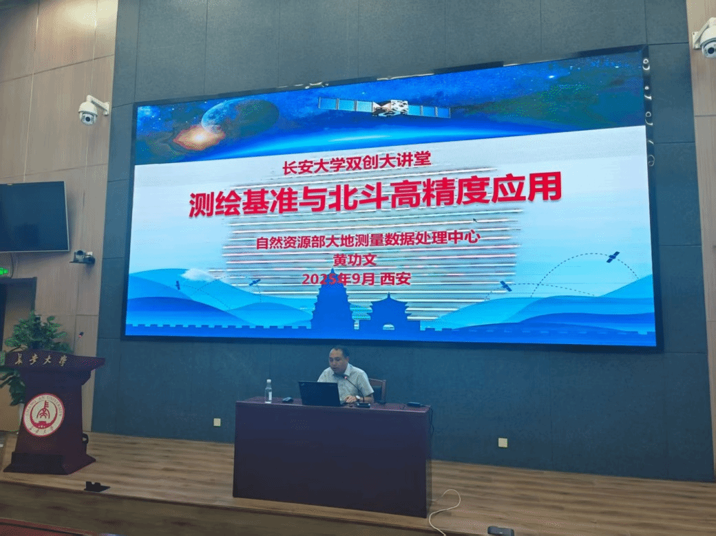 黄功文系统介绍了测绘基准作为所有空间位置基本依据的重要性,强调其是国家重要的战略性资源和国家安全的重要保障。他详细阐述了过去几十年我国测绘基准建设的发展历程,包括从二维向三维、从静态向动态、从参心坐标系向地心坐标系的重大转变,以及实现从米级、分米级、厘米级乃至毫米级的跨越式发展。黄功文重点分享了如何利用新技术、新手段建设和维持我国测绘基准,加强北斗规模化应用,提供更精准、更实时、更智能的测绘基准服务。此外,黄功文通过具体案例,向同学们展示了陕西省北斗高精度定位能力建设的应用实践和关键技术,为同学们提供了宝贵的专业知识和创新思路。他鼓励同学们积极参与创新创业实践,将专业知识与技术创新相结合,通过赛事锻炼自己的能力和素质,为未来的职业发展奠定坚实基础。